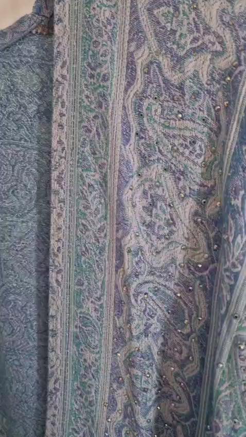 Pastel Blue & Purple 100% Cashmere Pashmina Occasion Abaya